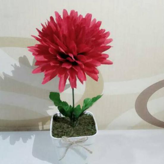 Satu Set Bunga Krisan Cantik Artificial Dan Vas Dekorasi Rumah
