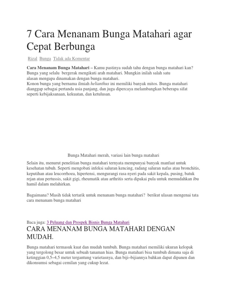 Jenis Jenis Dan Cara Menanam Bunga Matahari Dengan Mudah