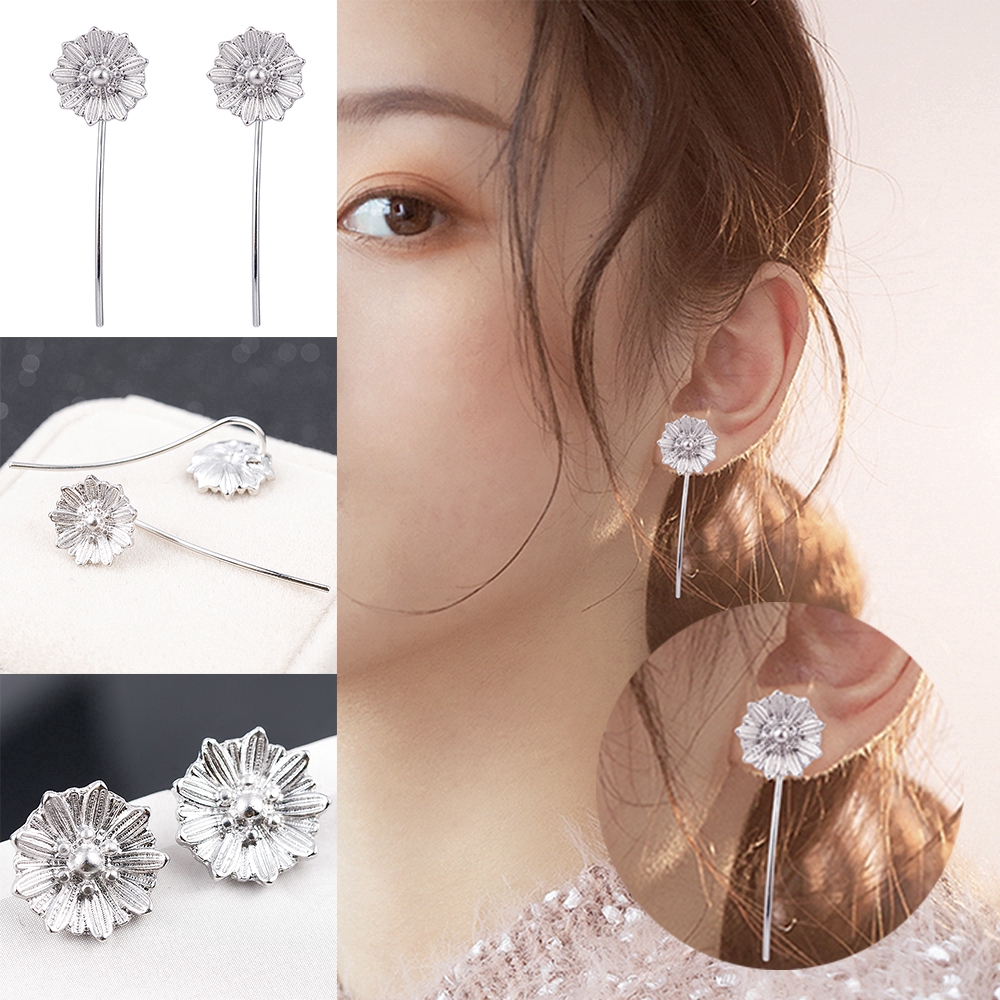 Anting Tusuk Bentuk Bunga Matahari Warna Silver Simpel Untuk Wanita