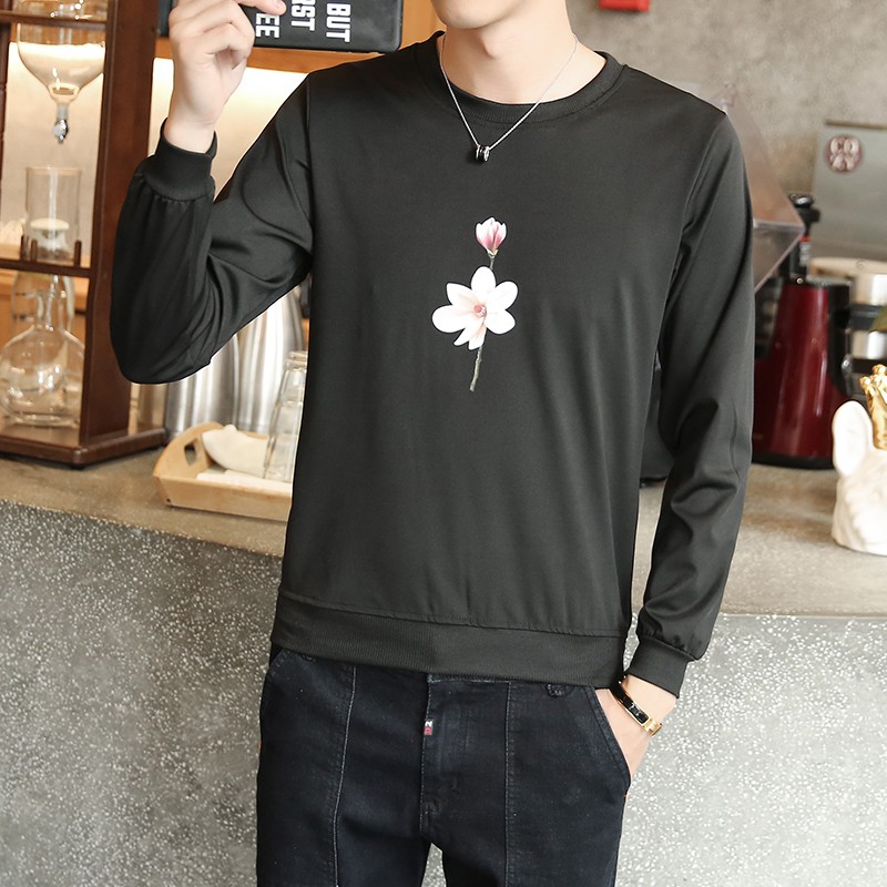 Kaos T Shirt Lengan Panjang Round Neck Ukuran Besar Motif Bunga Melati Untuk Pria Musim Gugur