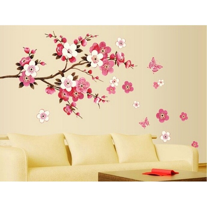 Bayar Di Tempat Dekorasi Stiker Tembok Modern Gambar Bunga Sakura Dengan Kupu Kupu Sarung Furnitur