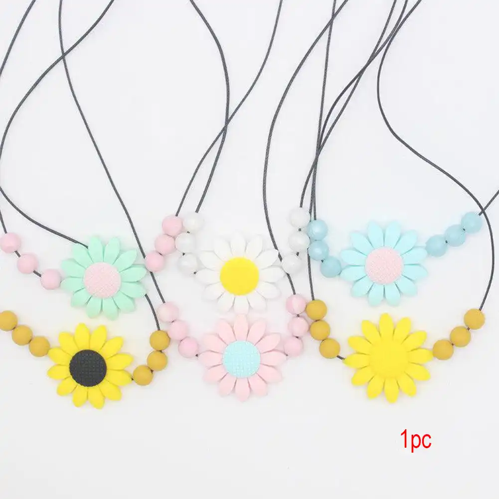 Baby Makanan Grade Silikon Bunga Matahari Jaringan Bunga Liontin Kalung Manik Manik Teether Mainan Kuning