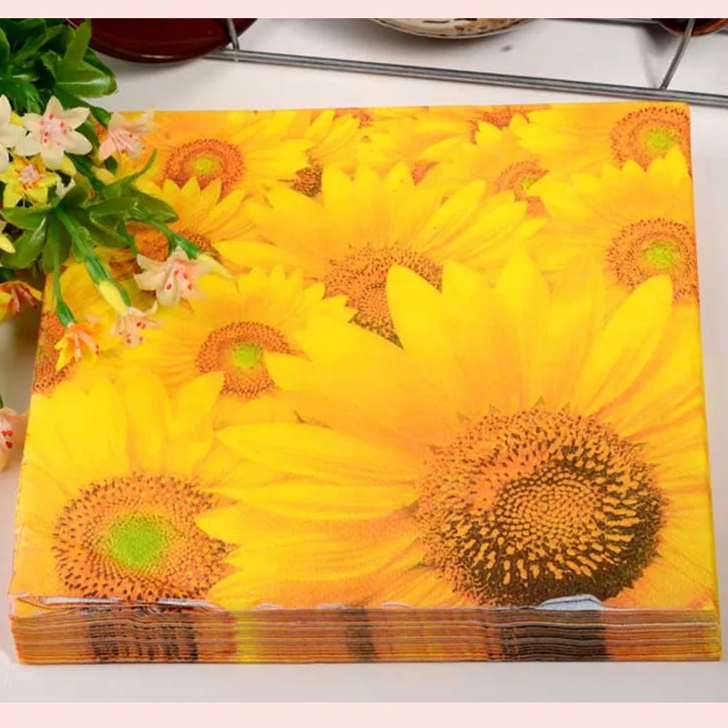 20 Pcs 16 5 16 5 Cm Bunga Matahari Kertas Decoupage Serbet Bunga Para Festas Party Pasokan Jaringan Servilleta Untuk Ulang Tahun Partai Shower Di