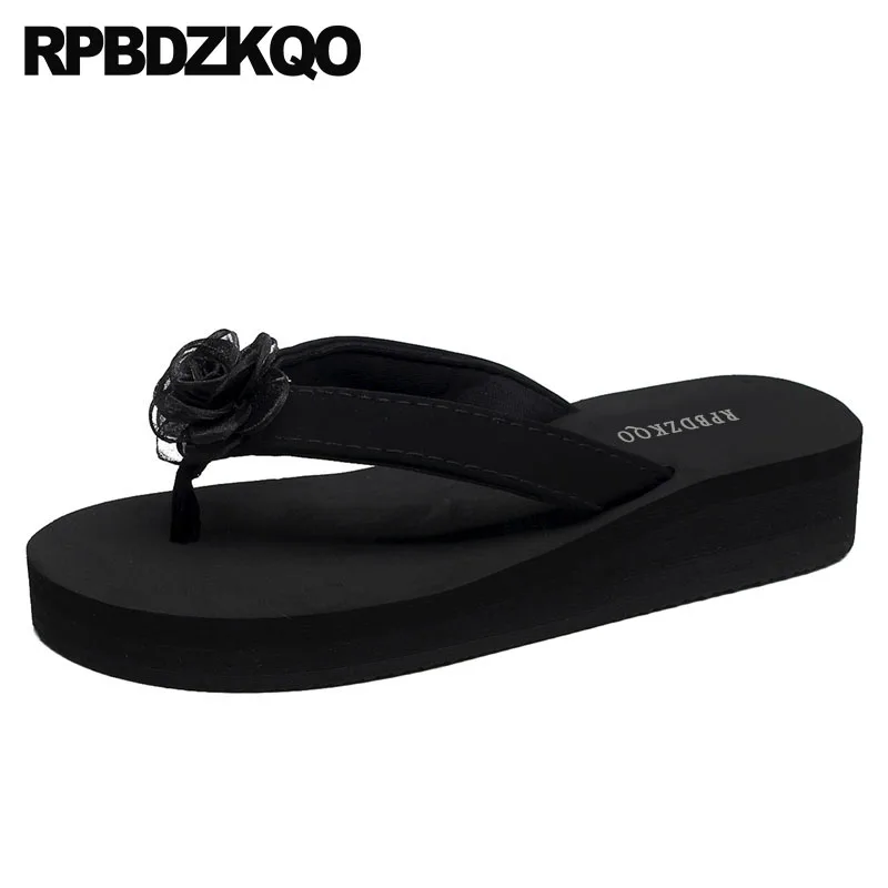 Us 25 02 36 Off Bunga Sepatu Flip Flop 5 Slide Desainer Ukuran Besar Lucu Tinggi Tumit Wedge Sandal Wanita Sandal Merek Besar Platform Bunga