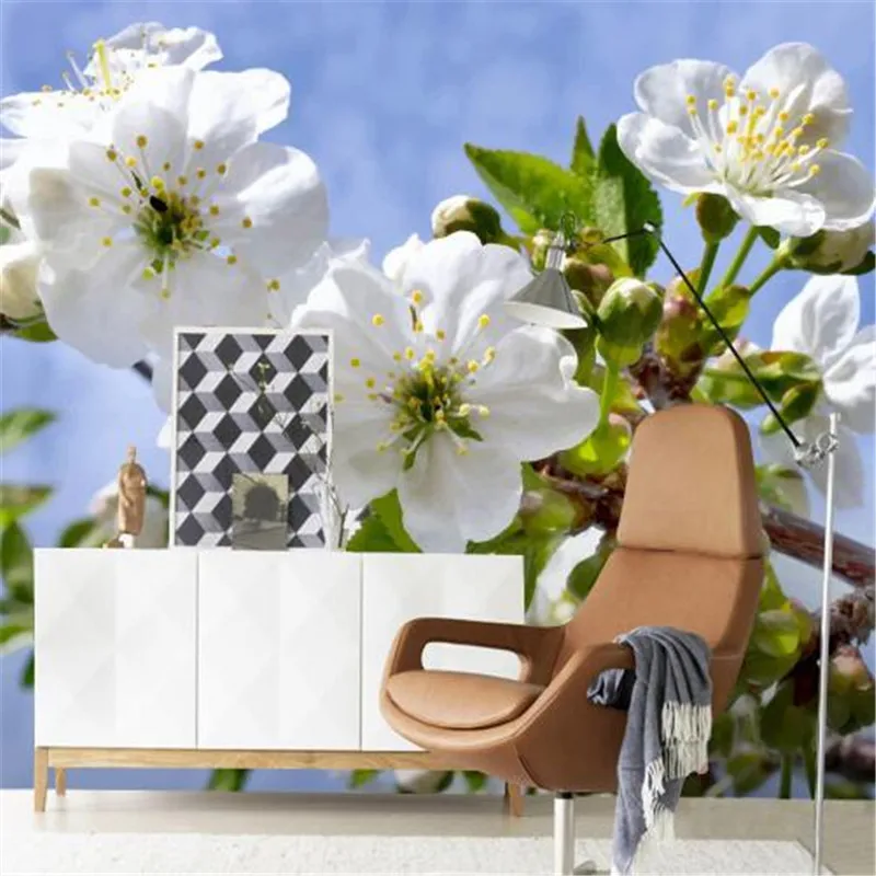 Us 22 78 30 Off 3d Alam Wallpaper Bunga Putih Pohon Wallpaper Foto Lukisan Dinding Ruang Tamu Hijau Daun Kertas Dinding Dekorasi Rumah Kamar Tidur